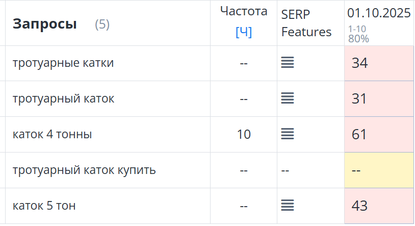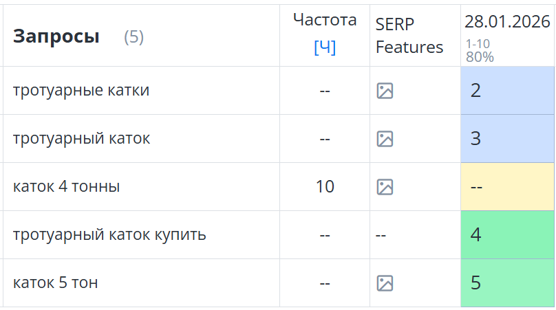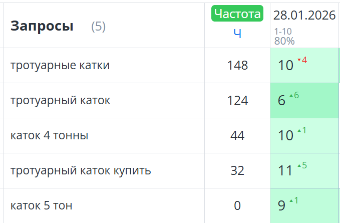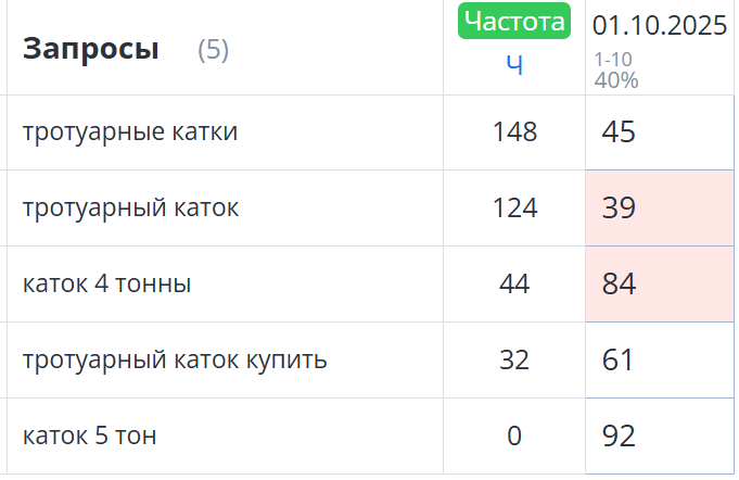 Провел анализ страниц конкурентов и выявил основные подстраницы, которые они используют у себя на сайте. Это технические характеристики катков по типу, весу и вибрации катков. На сайте клиента создал эти подстраницы и провел SEO оптимизацию этих страниц.